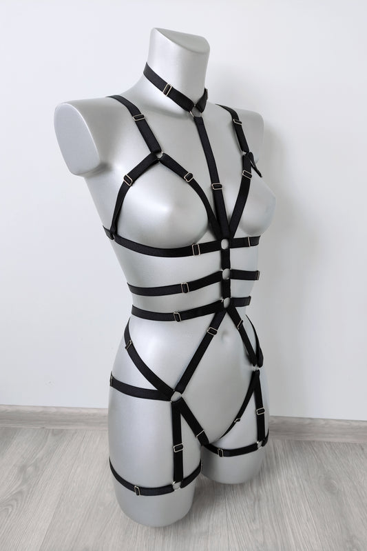 Roksolana - full body open crotchless harness bodysuit