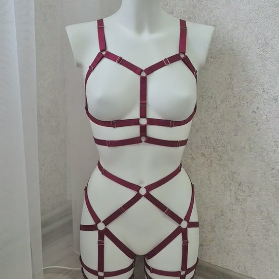 Baldur - burgundy women harness lingerie set with garter belt made by Eve & Shadow (Eve And Shadow).