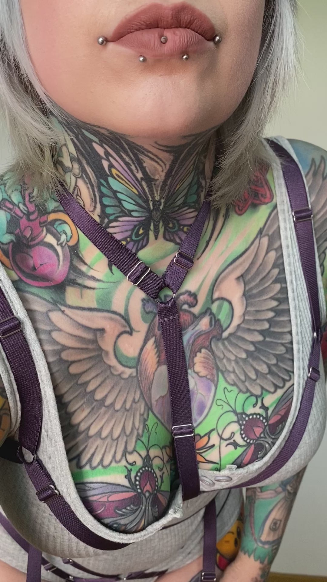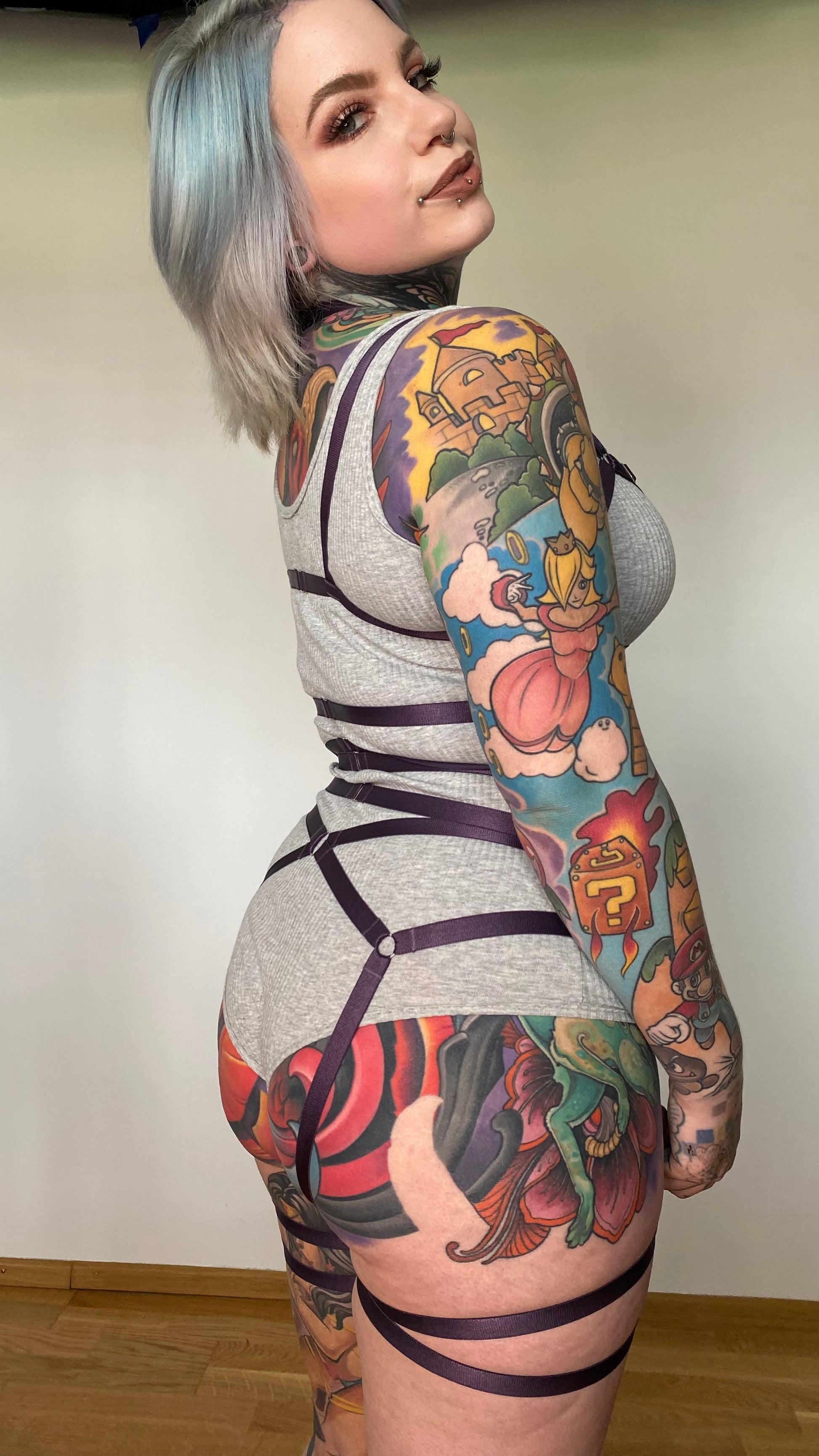 Persephone II - purple cage bra and leg garter belt harness lingerie
