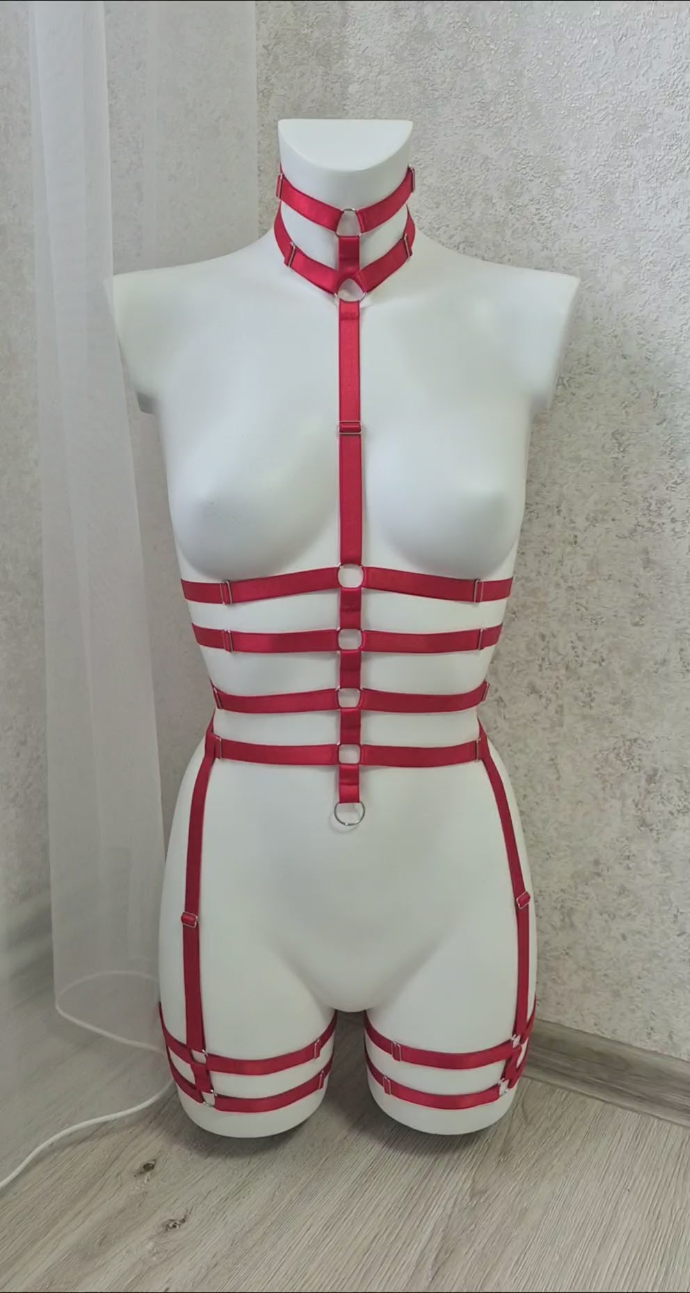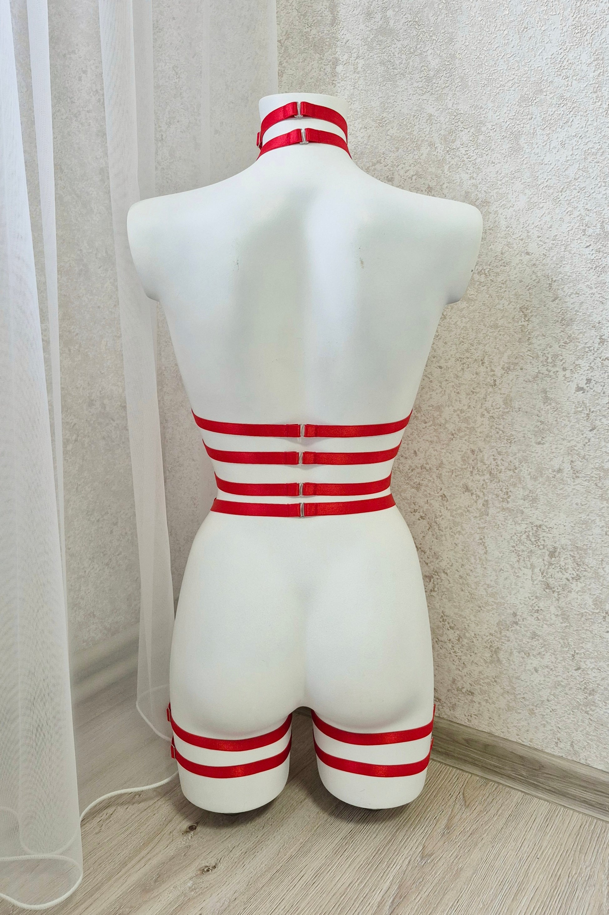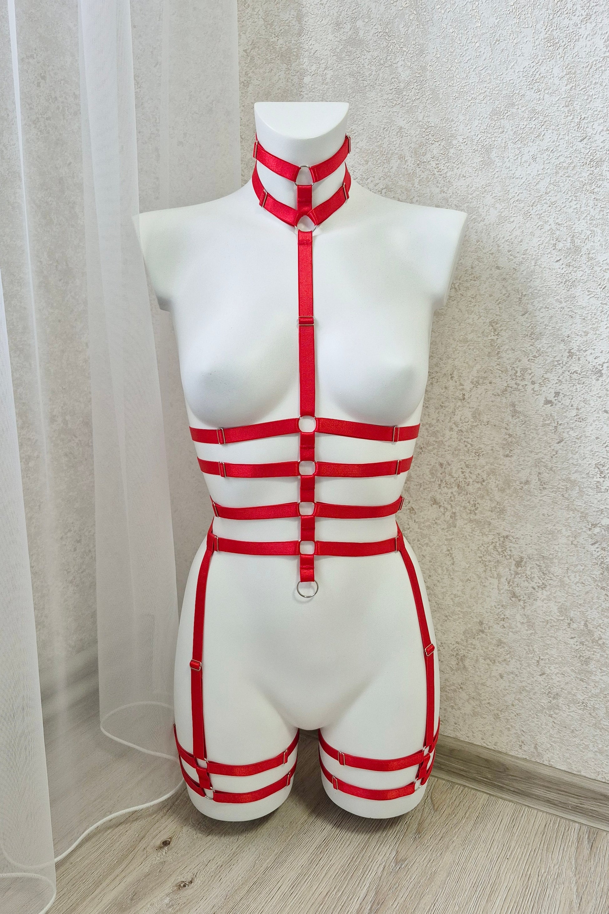 Sceleton - red full body harness lingerie valentines gift for women by Eve & Shadow (Eve And Shadow).