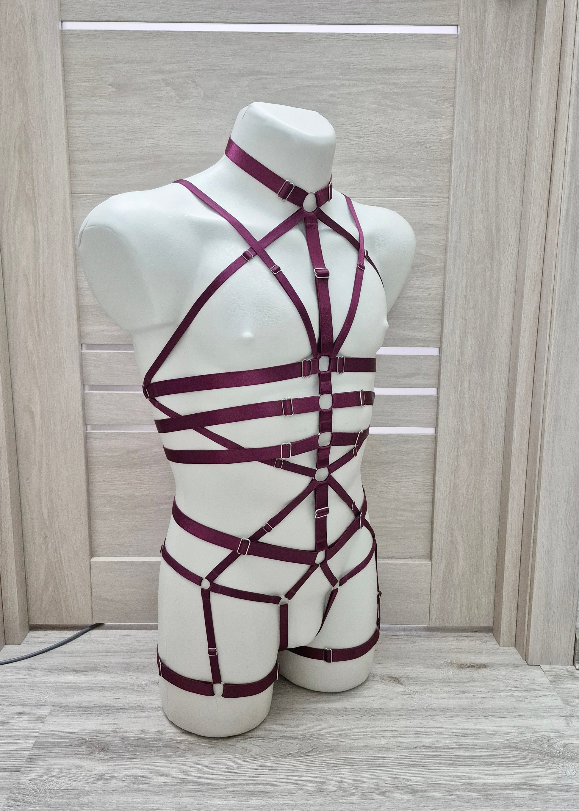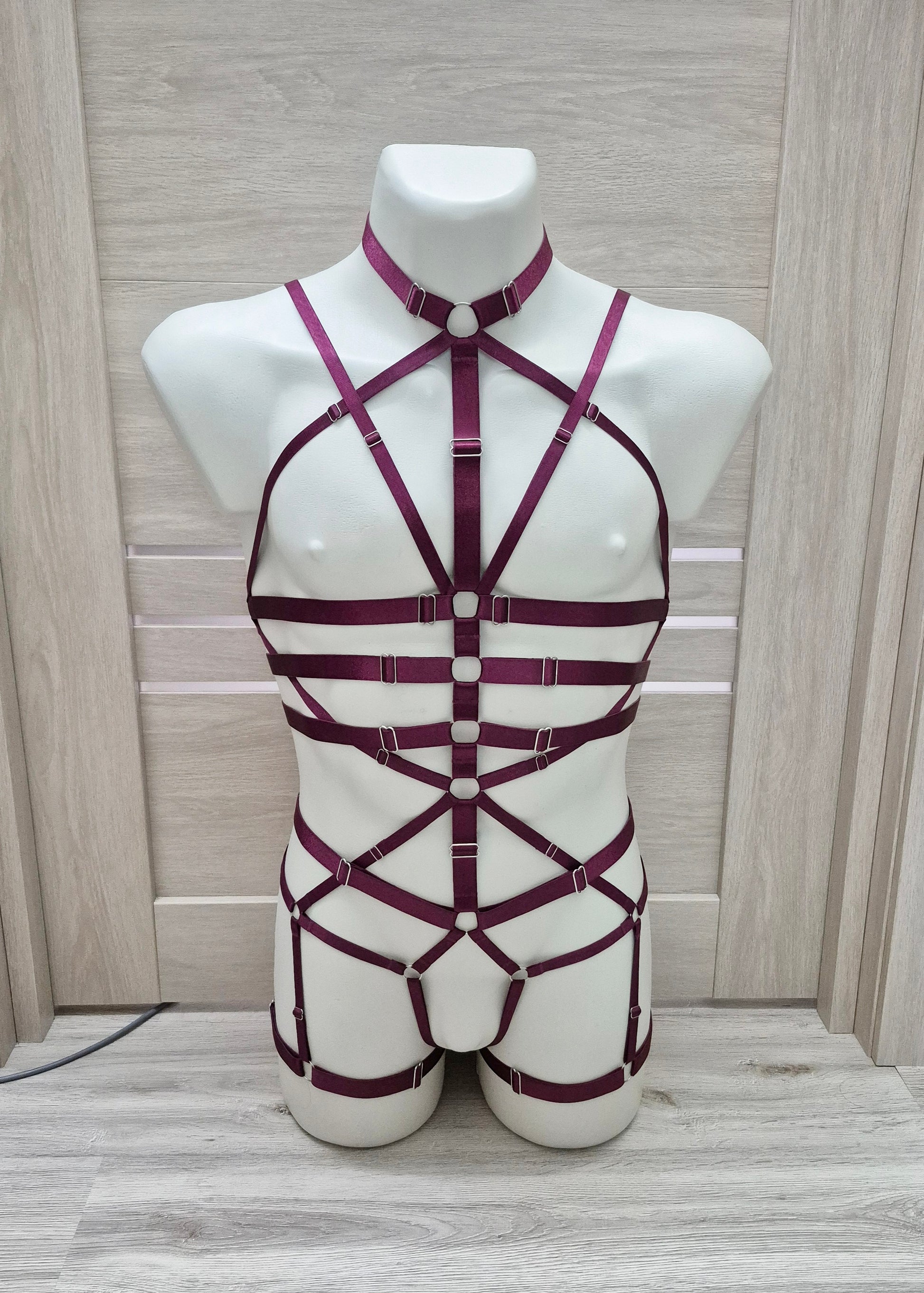 Scylla men - wine harness lingerie bodysuit by Eve & Shadow (Eve And Shadow).