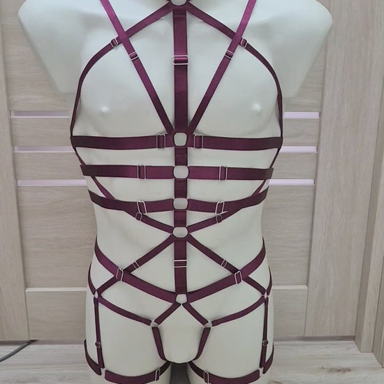 Scylla men - wine harness lingerie bodysuit