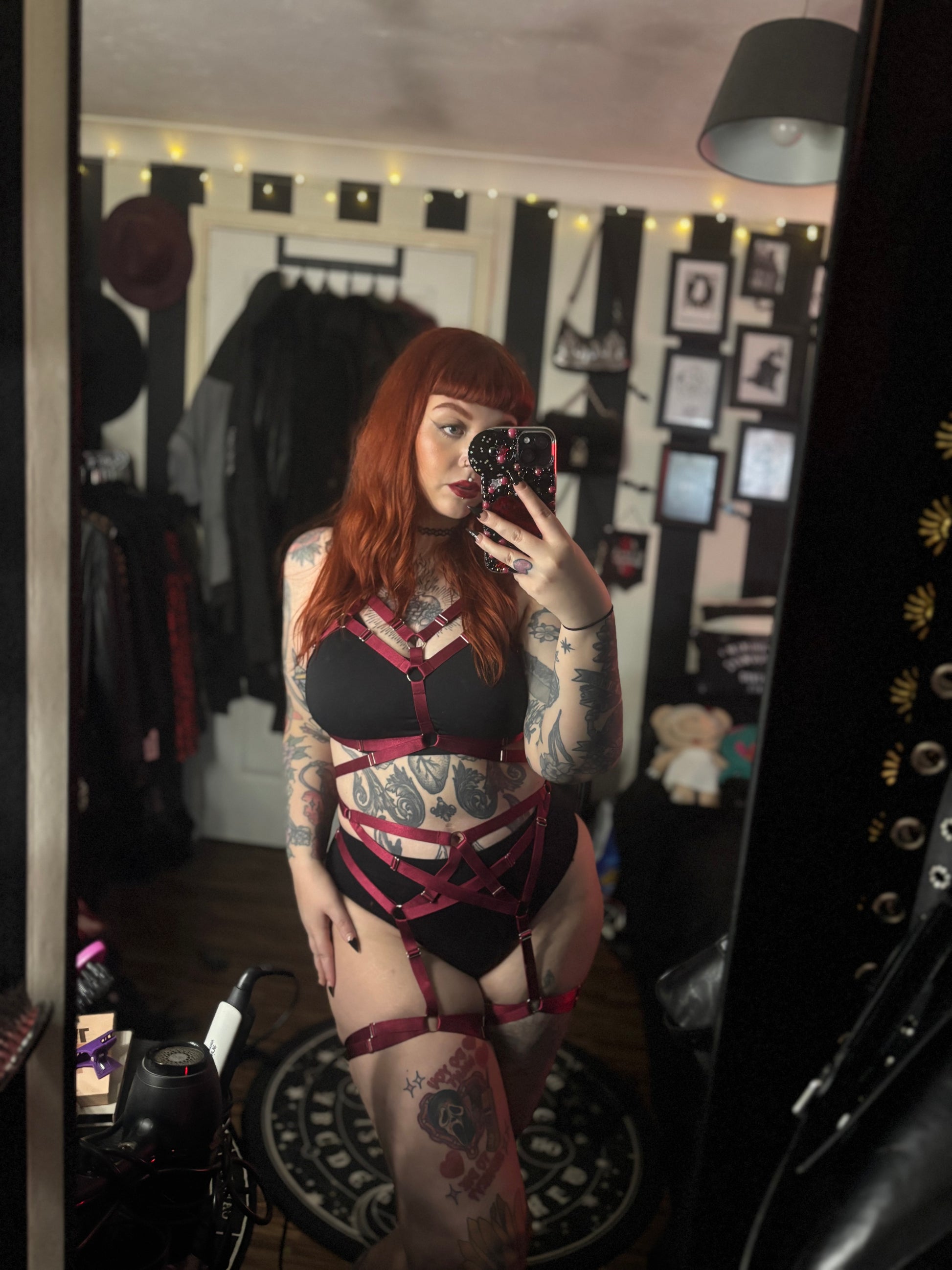 Sif - burgundy rave festival women harness outfit by Eve & Shadow (Eve And Shadow).